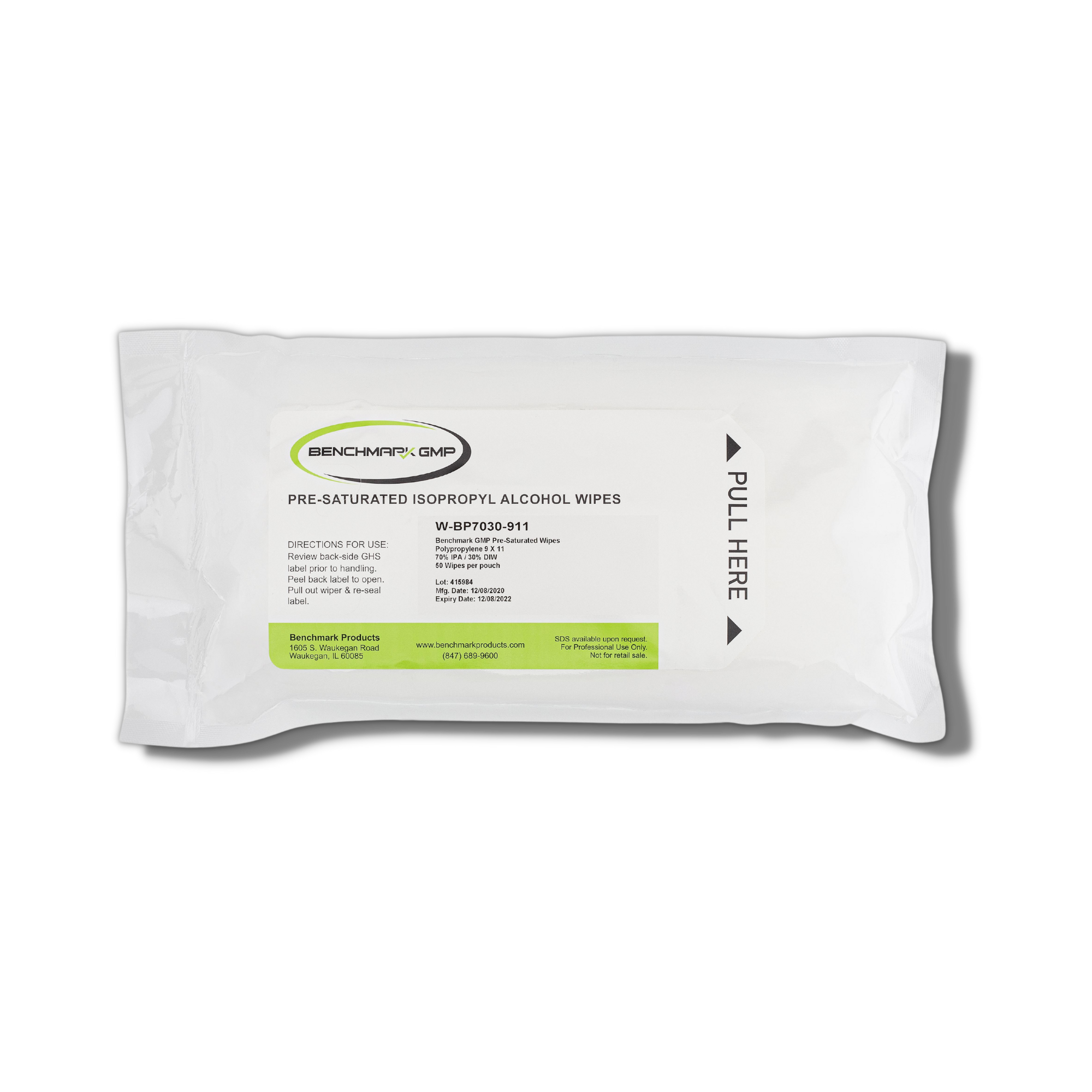 - BenchmarkGMP 9″ x 11″ Clean Room Wipes are 100% polypropylene in a pre-saturated solution of 70% isopropyl alcohol and 30% deionized water within a convenient resealable pouch.