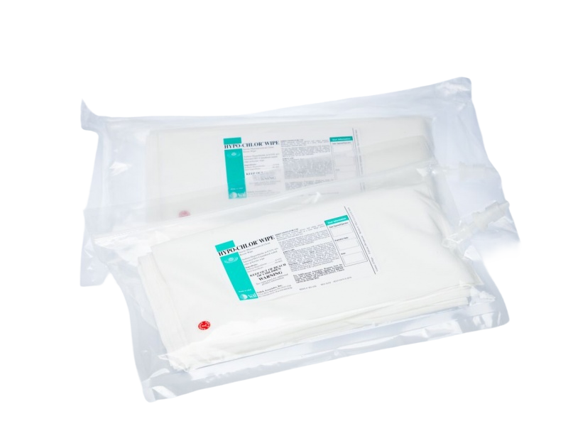 - HYPO-CHLOR Wipe 0.25%, 0.52%, and 5.25% are superior saturated sodium hypochlorite with USP WFI wipes used for both aseptic and non-aseptic wipe-downs of filling and packaging machinery, stainless steel surfaces, Lexan, polycarbonate, glass, and any critical surfaces that require cleaning.