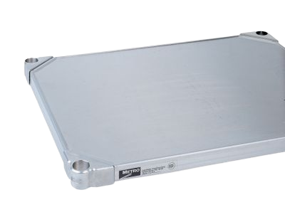 - Solid shelving is offered in four widths and six lengths, constructed from all-stainless, 18-gauge steel, which features a 1/8″ (3 mm) ship?s edge detail to effectively contain spills.